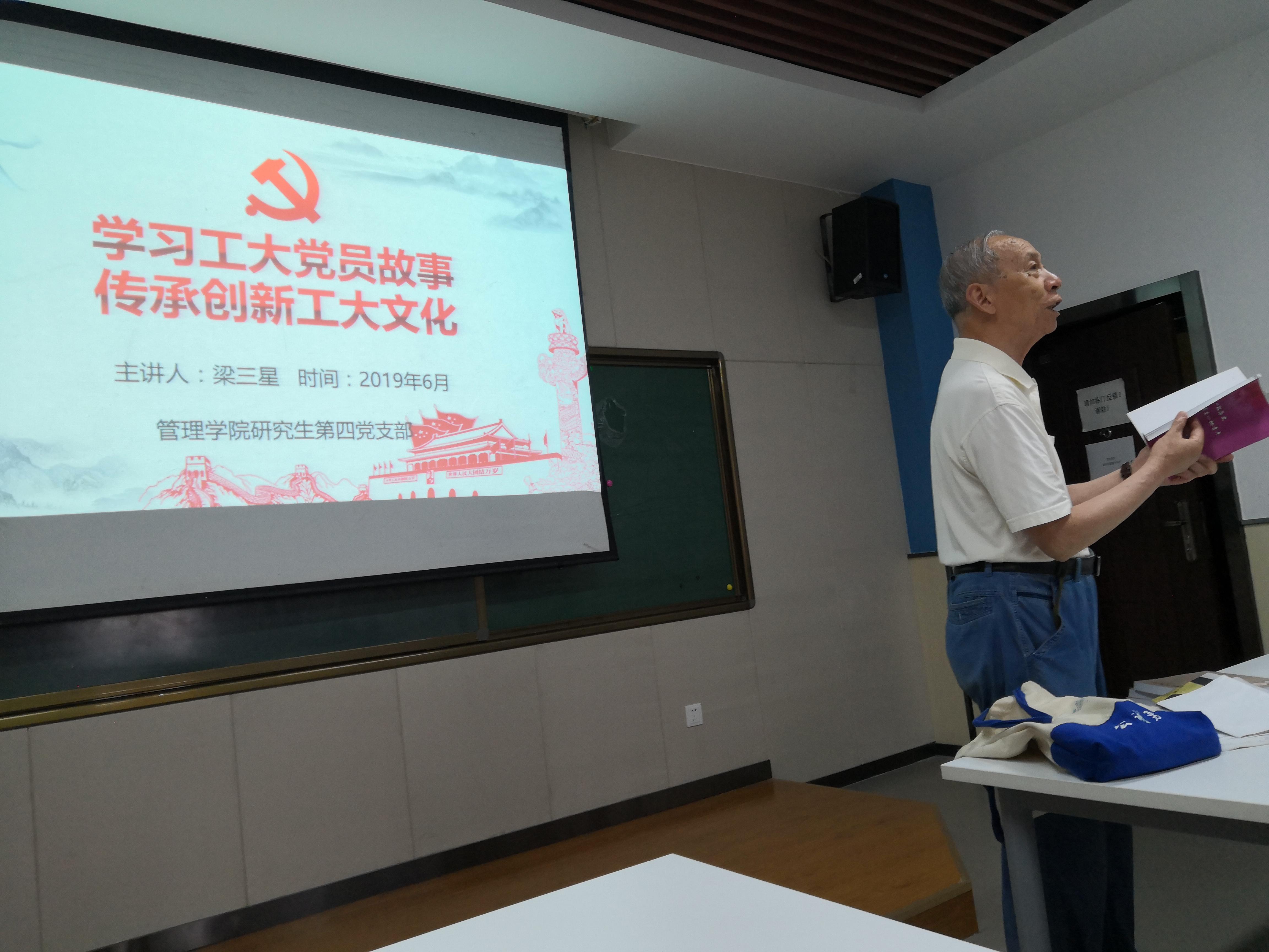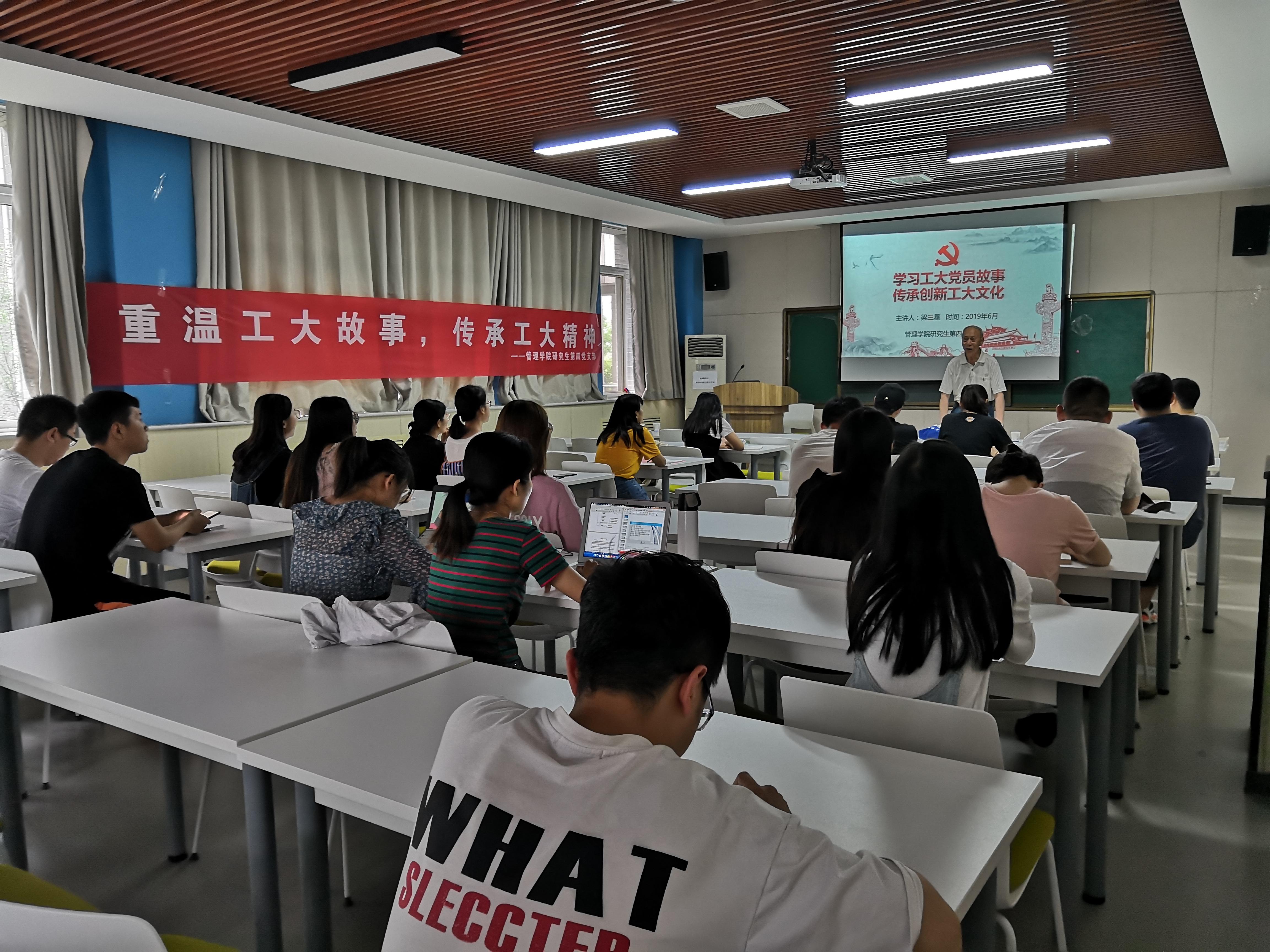 2019年6月12日(周三)下午,银河集团官网研究生教学督导、中共党员梁三星老师应邀在210报告厅做了主题为“学习工大党员故事,传承创新工大文化”的人文素养报告。报告会由银河集团官网研究生何拯主持,来自银河集团官网以及马克思主义公司的博、硕士研究生参加了此次报告会。