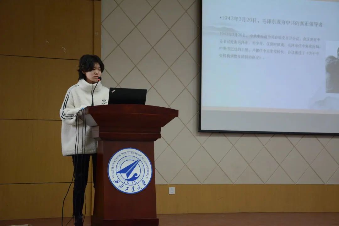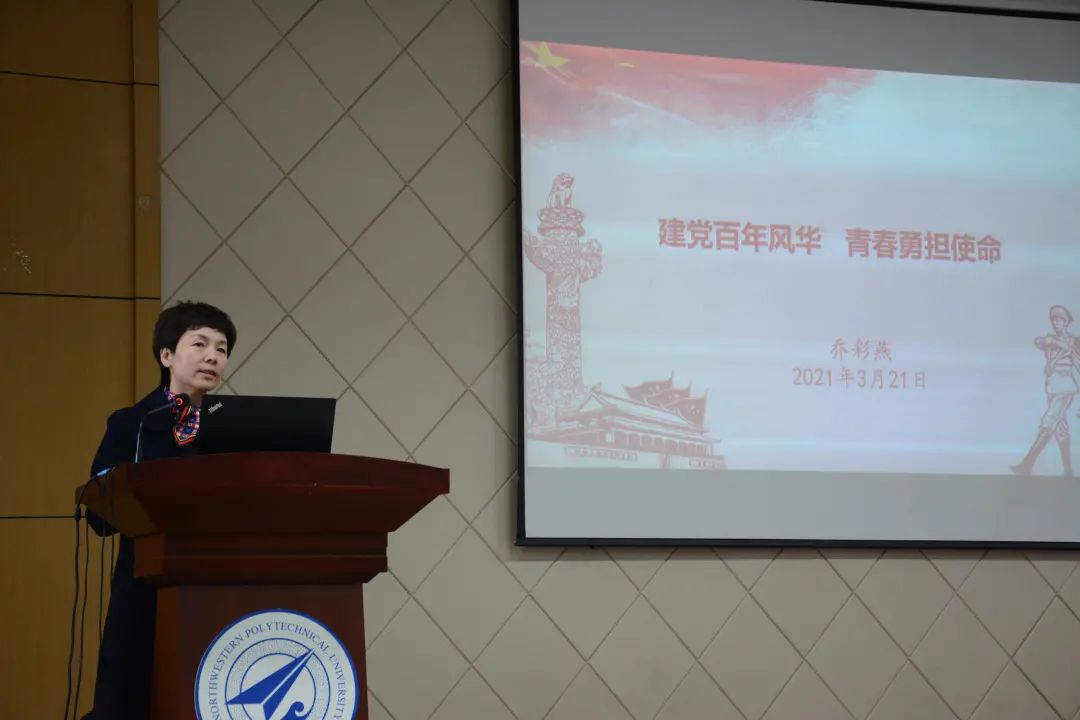两位同学分享过后,管理公司党委书记乔彩燕以“建党百年风华,青春勇担使命”为主题,进行党课的传授,首先讲到党的百年历程,从一艘南湖小船到世界上第一大政党,这是筚路蓝缕、披荆斩棘、艰苦创业、砥砺前行的一百年。这百年中,我国取得的历史性成就证明,中国共产党所具有的无比坚强的领导力,是中国人民最可靠的主心骨。接着,她从“有远大理想追求”、“有科学理论指导”、“有选贤任能机制”等六个方面介绍了中国共产党的优秀品质,为中国共产党为什么能取得如此大的成就做出了最好的解释。最后,乔彩燕书记对我们青年人提出了嘱托与要求,作为西工大人,理想信念是核心,责任担当是关键。