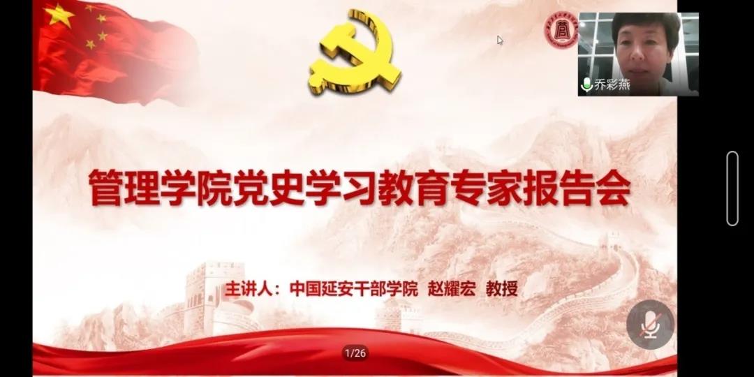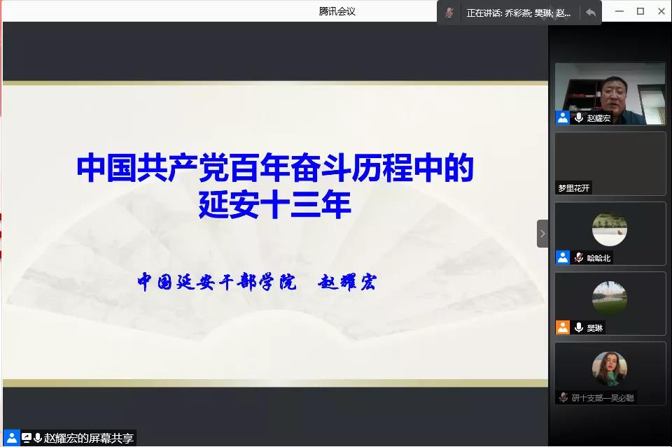 5月13日晚,公司举办党史学习教育专家辅导报告会(第二讲),特邀中国延安干部公司副经理赵耀宏教授为全体师生党员讲授题为《中国共产党百年奋斗历程中的延安十三年》主题党课。公司全体党员师生参加了学习,报告会由公司党委副书记樊琳主持。