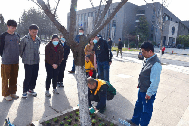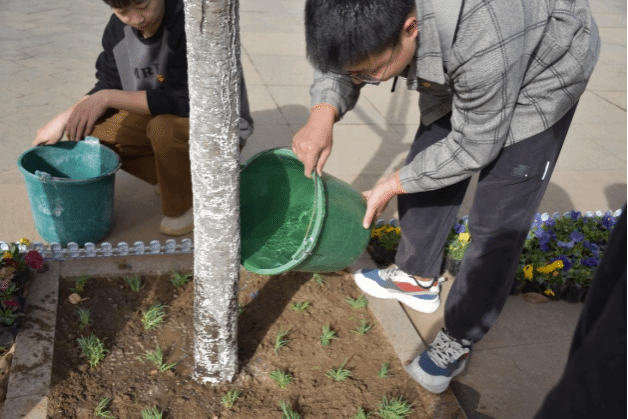在听完师傅们的讲解之后,参与活动的党员们便分组开始种植,大家都有着不同的分工,挖坑、栽种、浇水,后勤产业集团的师傅们也栽种过程中在不断对大家进行指导。随着种植手法的不断熟练,在公司党员师生的共同参与下,顺利完成了种植任务。