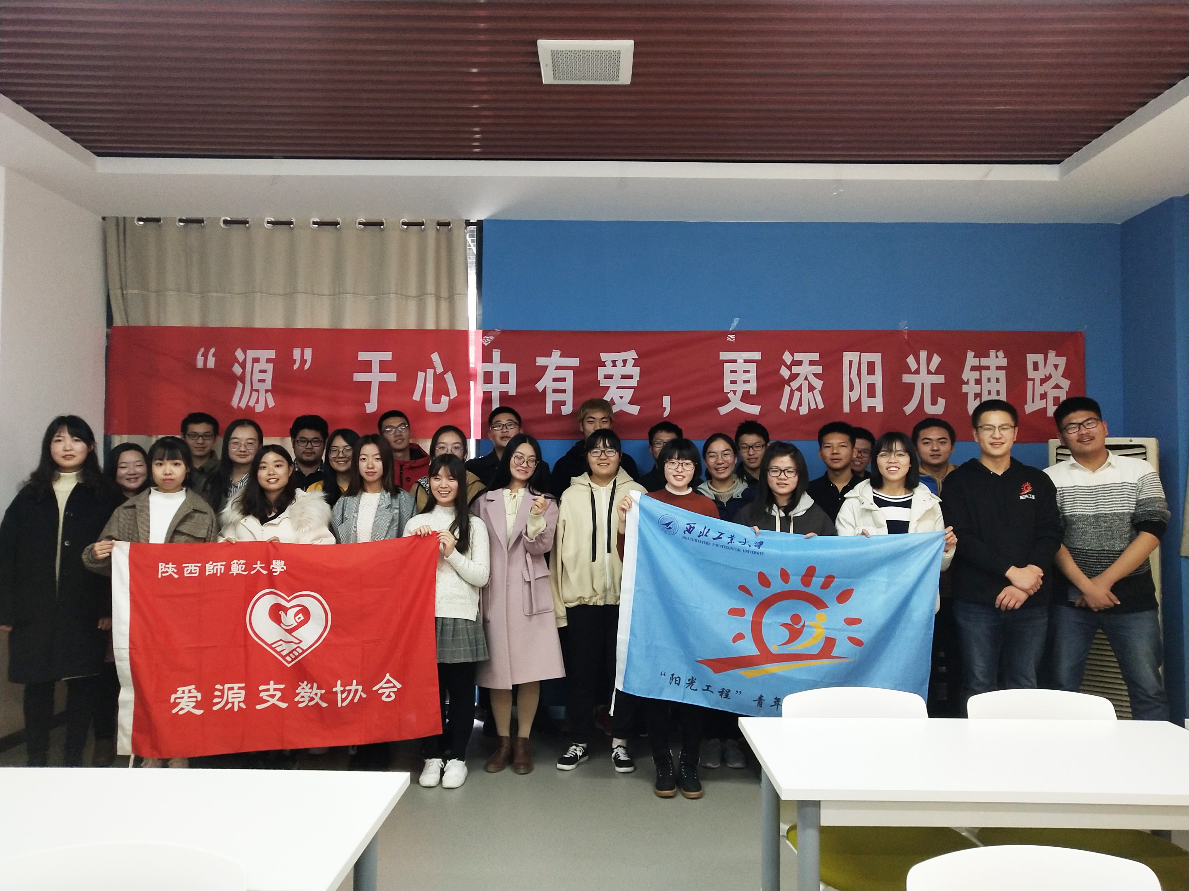 冬日虽寒心犹暖,11月24日,银河集团官网“阳光工程”青年志愿者服务队诚邀陕西师范大学爱源支教协会到银河集团官网长安校区参加主题为“‘源’有心中所爱,更添‘阳光’铺路”的交流活动。此次活动是“阳光工程”继“互联网+支教”之后在支教模式上的又一大创新探索,在增进“阳光”与“爱源”交流与合作的同时,探讨支教新模式以不忘初心,与时俱进。