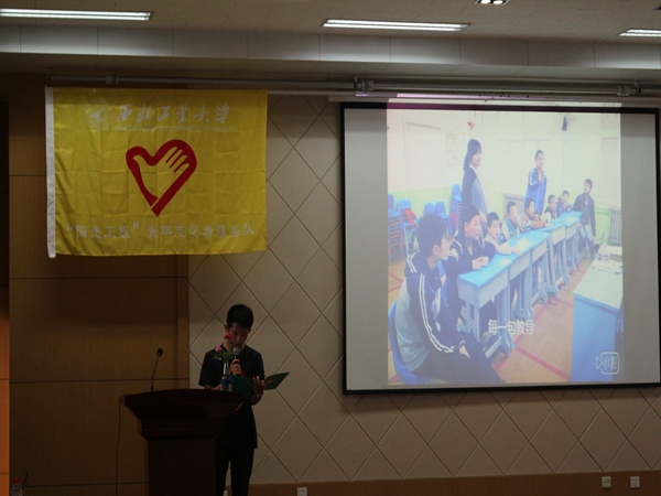 下午4点30分,主持人杨家豪、胡芗怡宣布结束仪式正式开始。“阳光工程”委员会主任雷玲上台发言,她以时间为轴,先后介绍了本学期“阳光工程”获得的荣誉,并回顾了35期活动中志愿者招新、启动仪式、暑期支教招新、中期活动开展等情况及成果。她总结过去、展望未来,提出了“踏实、开放、创新、多元”的思路,呼吁所有“阳光人”在未来不断地进行自我革新与发展。接着,伴随着阵阵掌声,精彩的演出拉开帷幕。东大区干事与志愿者共同携手演出小品《我的支教生活》,幽默生动的表演、朴素真诚的情感、欢乐的语言,一幕幕关于支教、学习、追梦的故事感染了在座的每一个人。随着支教视频的播放,天爱启智志愿者孙瑞谦,结合自身支教经历,将他与天爱的故事娓娓道来,讲述了他参与天爱启智后的心路历程和情感变化。晓班课特色项目为大家带来原创诗朗诵《快乐的教室》,简单而朴实的诗歌,诉说了往昔上课时的美好与感动。随后,银河集团官网团委书记夏春雨老师上台讲话,她对本学期“阳光工程”在支教公益方面取得的进步表示了肯定,并表达了对“阳光工程”十八年来坚持公益不忘初心的感谢,以及对“阳光工程”在未来有更多更好表现的期待。演出最后,由各区志愿者代表组成的合唱团队共同演唱了歌曲《守护阳光》,音符美妙,旋律悠扬,如同志愿者们守护阳光的坚定的心。最后,进入颁奖环节。此次颁奖活动表彰了在日常出勤、教学能力及活动参与积极性等多个方面表现突出的45名优秀志愿者。十次活动,一次表彰,这不仅是对志愿者工作的肯定与赞扬,更是对他们坚持公益的一种支持与鼓励。