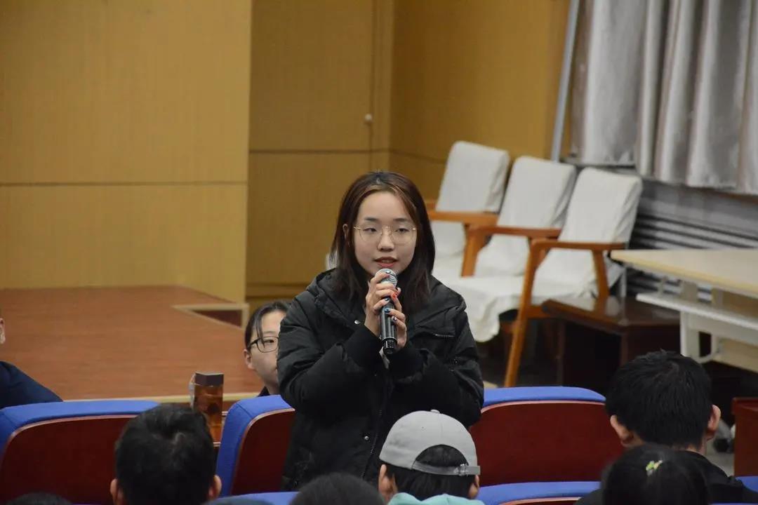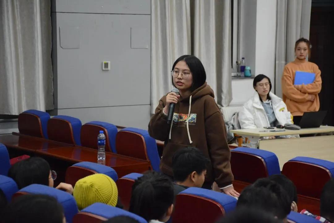 成员代表新媒体工作室张洪瑾同学、就业与创新实践部陆曹玟珂同学相继上台分享了自己的感想。