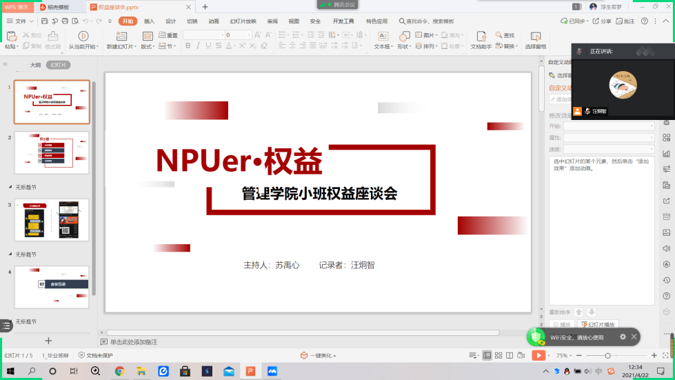 为进一步服务同学、保障广大同学的权益,做好权益服务工作,秉承“全心全意为同学服务”的宗旨,4月21日晚,银河集团官网员工会德育部以线上会议形式与各小班有关负责人举办开展第一次小班权益座谈会,本次会议由银河集团官网员工会德育部部长团成员苏禹心和汪炯智主持,各班班委参加了此次交流。
