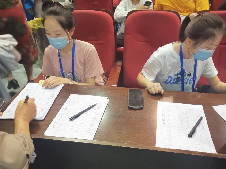 在疫苗接种现场,院员工会志愿者服务工作如下:两名志愿者负责接种人员的排队和注册任务;四名志愿者在场地入口,负责接种人员的登记并配合医务人员录入师生疫苗接种信息;四名志愿者在接种台帮助医生录入接种信息并维持现场秩序;四名志愿者在出口处负责检查接种后留观时间是否符合要求;两名志愿者在出口处录入师生的一卡通信息。