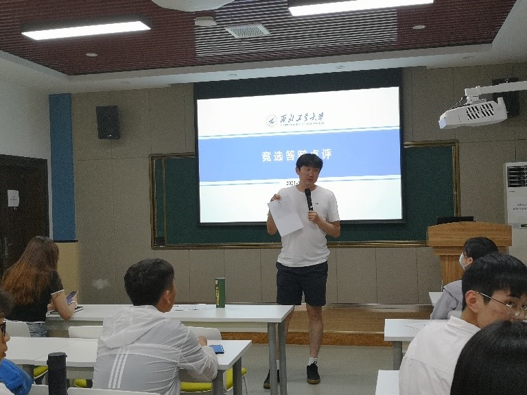 那依力老师首先对参辩同学表示了肯定,总结了每位同学答辩的优点;其次提出了答辩中出现的一些问题,如提交的个人材料不规范、答辩内容未涉及团委现存问题及解决方案等;最后那依力老师对日后的团委工作进行了展望。