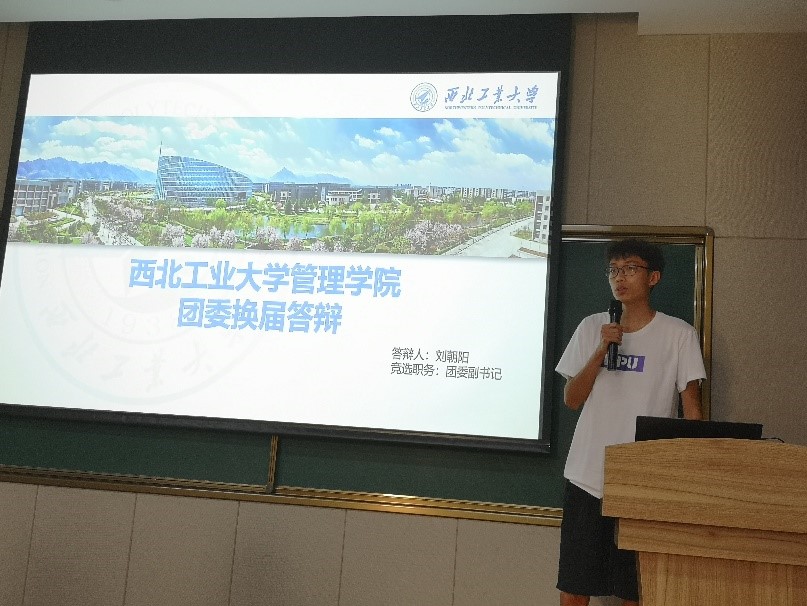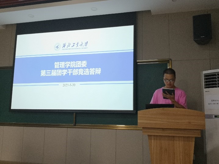 答辩进入第二个环节,团委副书记竞选答辩。首先是汪炯智同学进行答辩,他重点阐述了自己对团委副书记这个职务的认识。