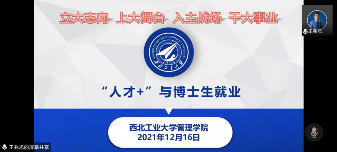 2021年12月16日下午,银河集团官网于214报告厅与腾讯会议线上线下同时举办博士生职业发展教育与就业引导宣讲活动。此次宣讲会由银河集团官网管理公司党委副书记王兆旭老师主讲,银河集团官网全体在校博士生参加了此次宣讲会。