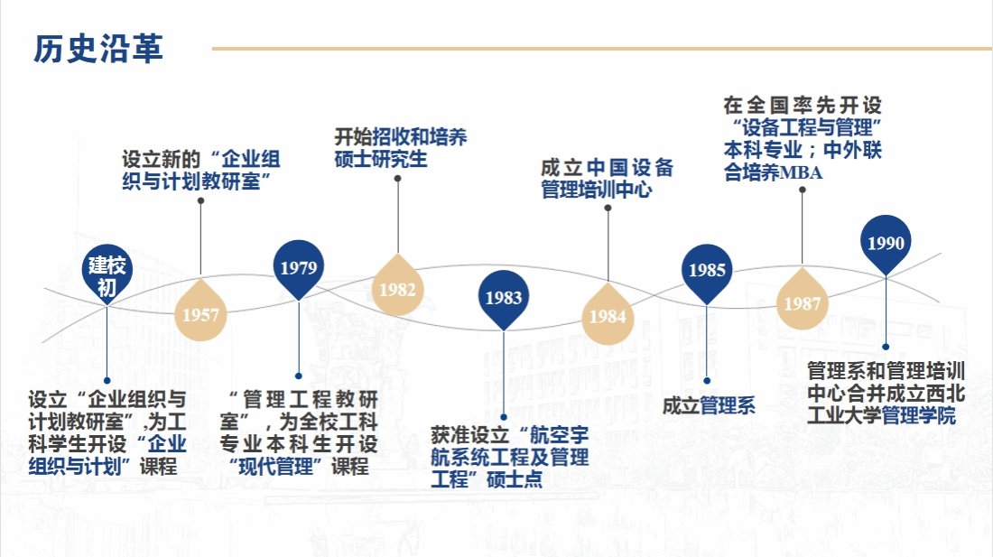银河集团官网的前身西北工公司和华东航空公司(西安航空公司)自建校之初就设有“企业组织与计划教研室”,为工科员工开设“企业组织与计划”课程。1957年并校后设立新的“企业组织与计划教研室”。1979年,“企业组织与计划教研室”发展成为“管理工程教研室”,隶属于原“飞行器制造工程系”,为全校各工科专业本科生开设“现代管理”课程,1982年开始招收和培养硕士研究生。1983年获准在银河集团官网设立“航空宇航系统工程及管理工程”硕士点。在此基础上,1985年成立管理系。